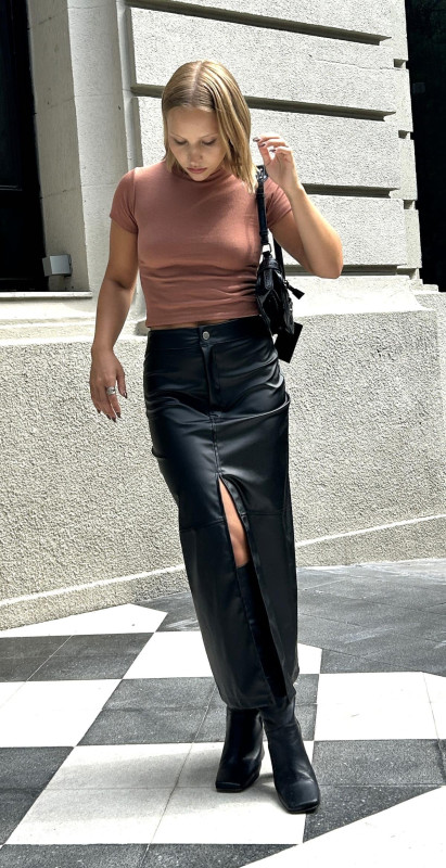 POLLERA LARGA DE CUERINA CON TAJO - Art.593